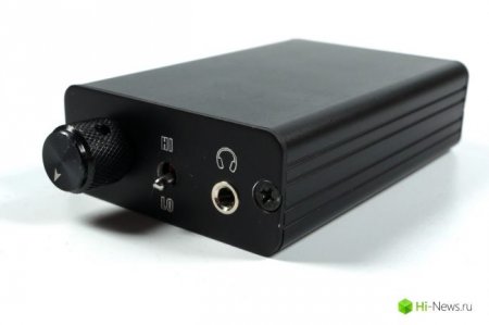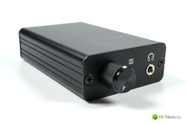 Впереди находится регулятор громкости, он аналоговый, но используется хороший потенциометр без разбаланса каналов и шума при вращении. Дальше идёт переключатель коэффициента усиления и гнездо для наушников (естественно, 3,5 мм). На задней панели разместился выключатель питания, два светодиода-индикатора (работы и заряда батареи) и два MicroUSB-порта. Каждый из них можно использовать для подключения к устройству, но один будет заряжать ЦАП от питания USB, второй — нет. «Чистый» вход логично использовать с разными смартфонами и плеерами, для которых важно сберечь заряд аккумулятора, а тот, что с зарядкой — удобней при работе с ПК. В принципе, можно использовать и два провода одновременно: один для зарядки, второй — для данных.