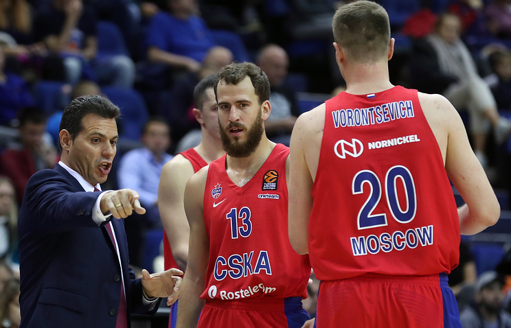 Главный тренер ЦСКА Димитрис Итудис, игроки Серхио Родригес и Андрей Воронцевич (слева направо)
