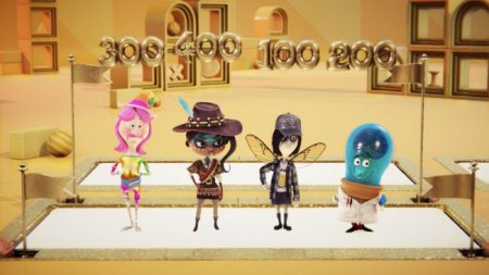 Каждый игрок должен выбрать себе уникальный аватар и ввести своё имя с помощью клавиатуры на экране смартфона. Экран телевизора в этот момент служит неким «общим хабом», на котором задорный ведущий по имени Макс подбадривает игроков и объясняет им правила игры. Среди персонажей пока восемь ярких личностей: девочка-гот, человек-хот-дог, суровый бородатый альпинист, инопланетянин и другие. Что-то мне подсказывает, что в будущем разработчики планируют плавно вводить в игру новых героев. Все они отличаются стилем поведения во время игры, уникальной мимикой, смешными ужимками и жестикуляцией. Всё точно так же, как до этого было в серии Buzz!, так что поклонники старых работ студии Wish останутся довольны.