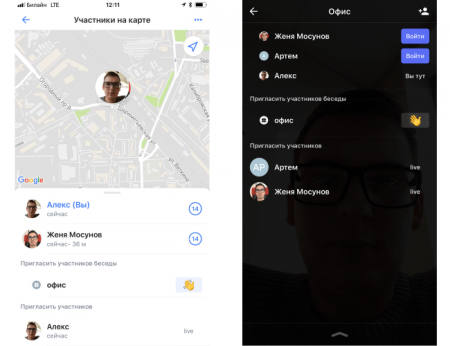 Еще одна полезная функция — отправка геолокации собеседнику. Просто нажмите на соответствующую кнопку — и вы сможете отправить свое местоположение, а также увидеть местоположение всех участников группы. Теперь больше не возникнет вопросов вроде «а где Сережа, почему он так долго?».
