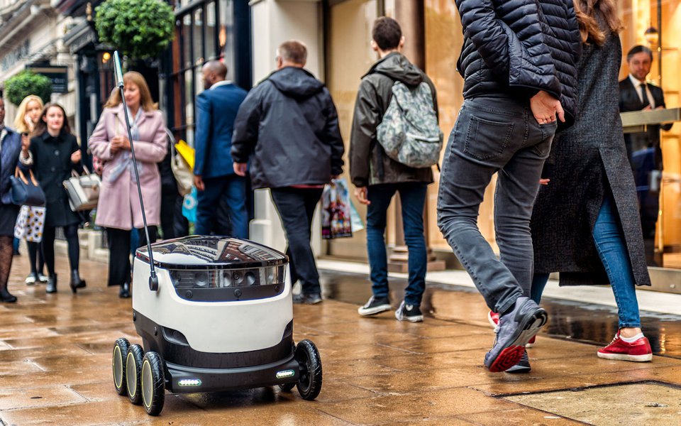 Робот передвигается по тротуарам со скоростью 6 километров в час. Он оснащен девятью камерами и ультразвуковыми датчиками. Все это позволяет ему понимать, что происходит вокруг, и принимать быстрые решения, стоит ему объехать препятствие или остановиться перед человеком.