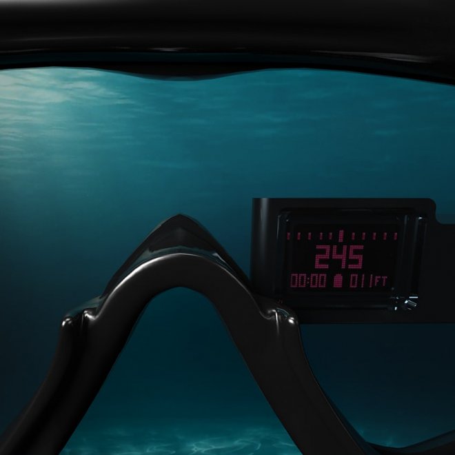 Дисплей обеспечивает непрерывное отображение показаний компаса, глубины погружения — в футах или метрах, времени — в минутах и секундах и уровня зарядки аккумулятора. Кроме того, в нем используются слабоосвещенные символы для сохранения ночного зрения пловца.