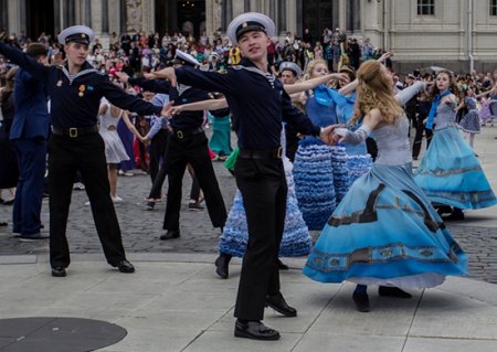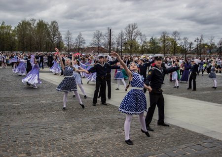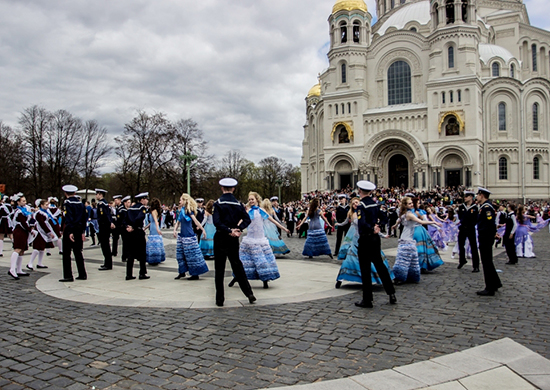 Мероприятие объединило более 300 танцующих пар из военно-морских образовательных учреждений Военного учебно-научного центра ВМФ, творческих коллективов города, которые показали навыки вальсирования на старинной площади перед Кронштадтским Морским Собором.