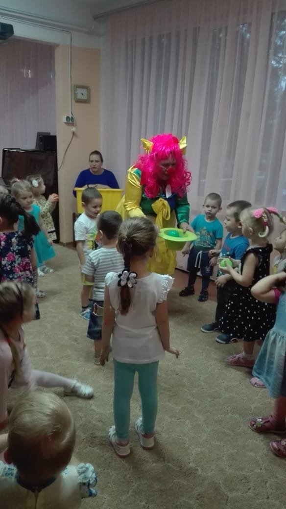 Клоунесса «Ириска» пришла в гости к детям. «Я ваша любимая и весёлая, я живу в цирке и смешу людей, и каждый раз вы мне рады снова». Клоунесса подготовила много веселых заданий детям: танцы, игры, конкурсы, загадки. А закончился праздник веселым хороводом «Паровозик». Мероприятие прошло весело и задорно.