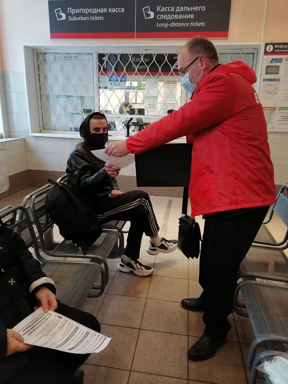 Волонтеры г. о. Серебряные Пруды работают на ж/д и автостанциях, в электропоездах и в автобусах, призывая всех пассажиров обязательно носить маску. Рейды по соблюдению санитарно-эпидемиологических требований на транспорте и в других местах общего пользования в нашем округе проходят