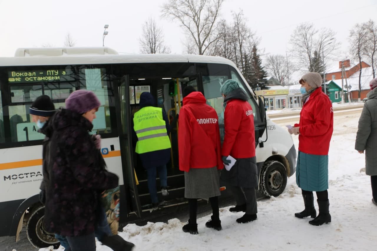 Волонтёры городского округа Серебряные Пруды проверяют соблюдение масочного режима в общественном транспорте.