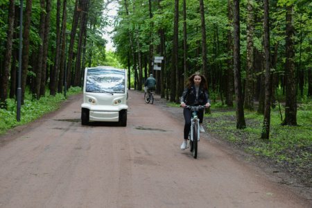 Андрей Воробьев объехал на электрокаре территорию Мещерского парка, осмотрев футбольный стадион, зону воркаута, веревочный городок «Панда-парк», стилизованную детскую площадку Angry Birds и пункт велопроката.