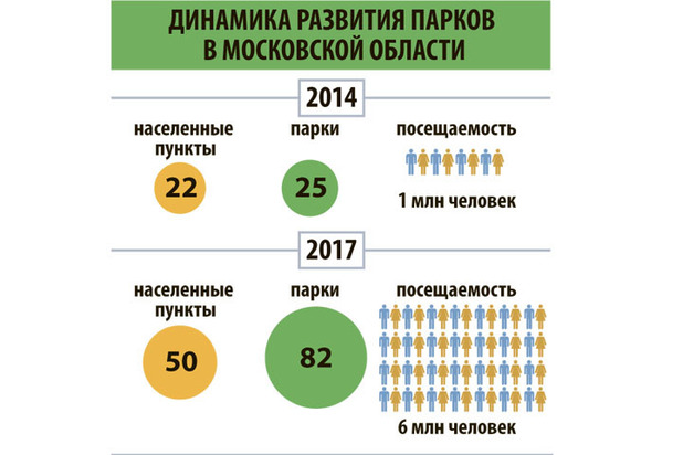 Министр культуры Московской области Оксана Косарева сообщила на совещании, что за последние три года число парков увеличилось более чем в три раза. 74 парка являются многофункциональными, а восемь — специализированными: два детских парка, один спортивный парк и пять лесопарков.