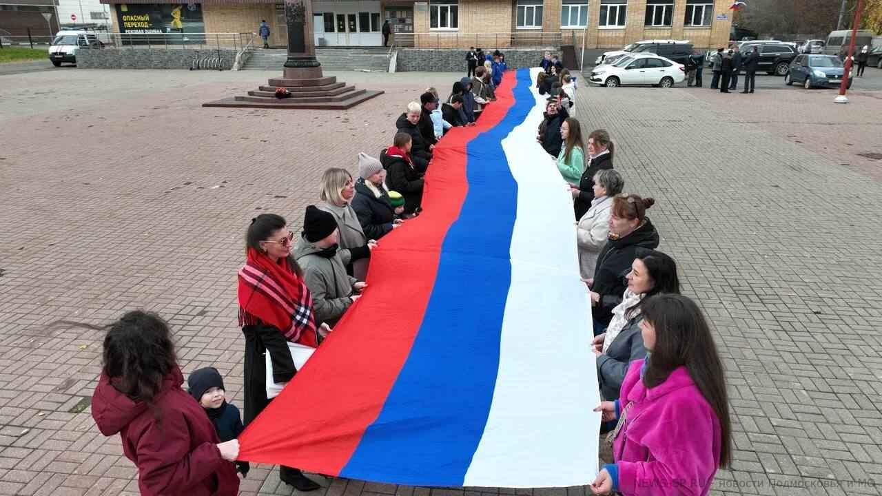 В преддверии Дня народного единства учащиеся школы Чуйкова, активисты Движения Первых и Молодой Гвардии, педагоги, родители и жители Серебряных Прудов приняли участие в патриотической акции «Российский флаг».