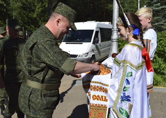 В соответствии с традицией, иностранных спортсменов встретили традиционным русским караваем, который поднесли девушки и юноша одетых в национальные костюмы.