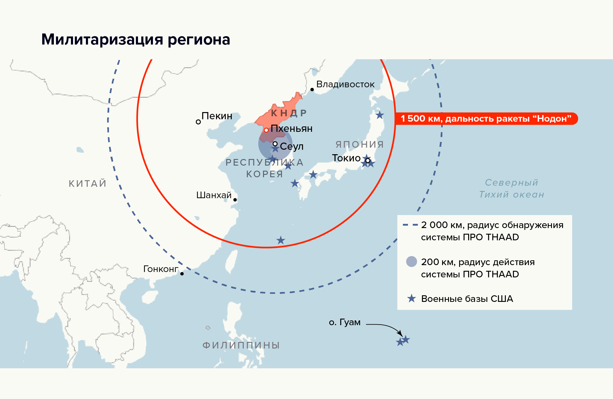 Ситуация на Корейском полуострове остается крайне напряженной. В июле КНДР дважды провела испытания баллистических ракет. В свою очередь США с союзниками постоянно проводят в регионе широкомасштабные морские учения. Стороны обмениваются жесткими заявлениями, не исключая ни одного варианта развития ситуации, в том числе военного.